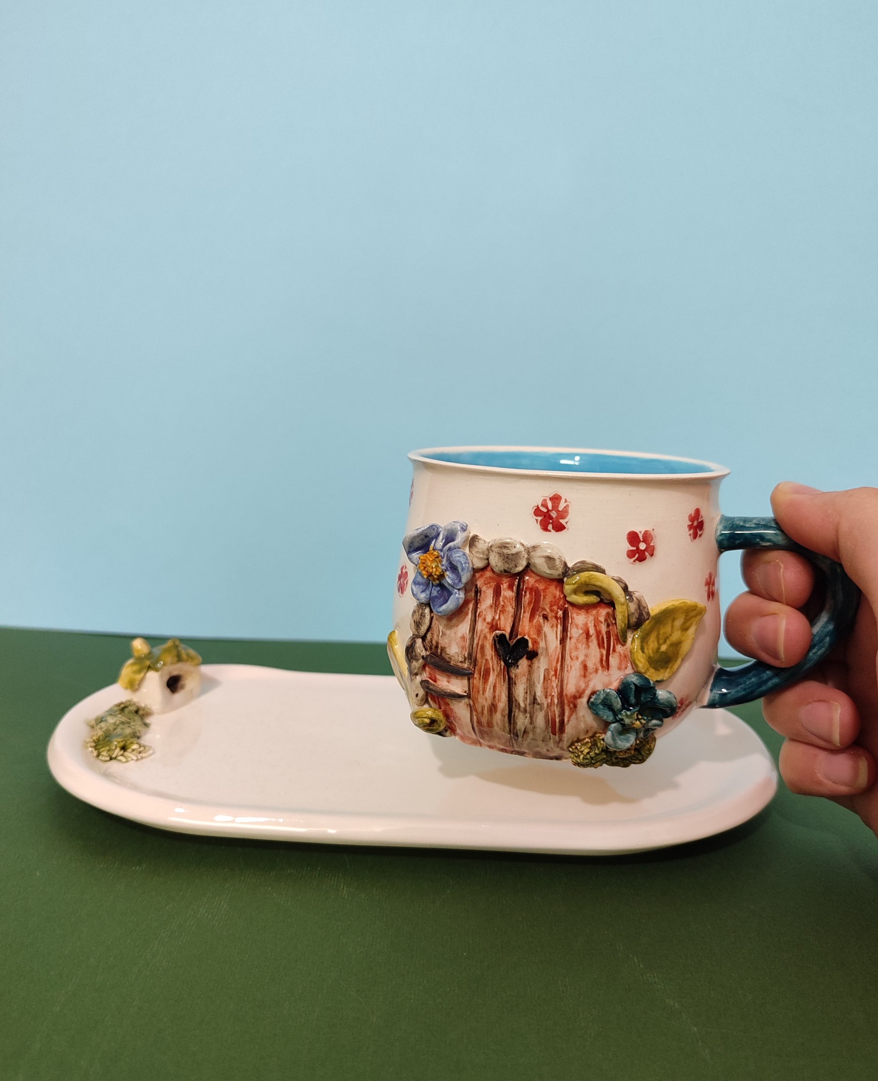 ماگ طرح کلبه چوبی با گل💞 دستساز اندازه: ماگ: ارتفاع: ۸ دهانه: ۸ جنس:سرامیک درجه یک بدون زیرماگی هم قابل سفارش است. زیرماگ: طول:۲۱ عرض:۱۰