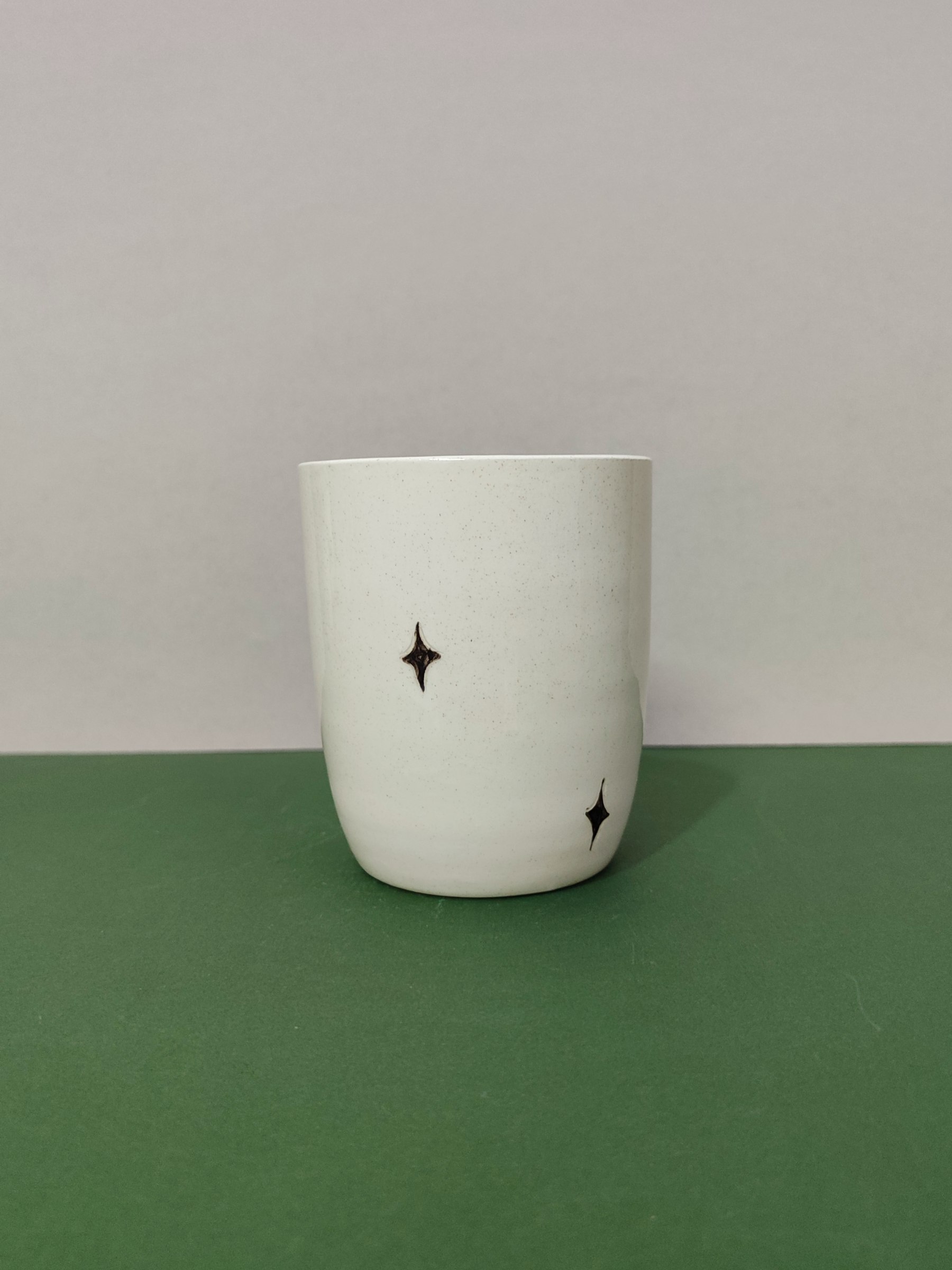 جاقلمی قارچ و ماه دستساز اندازه جاقلمی:دهانه:۸ ارتفاع:۱۰ جنس: سرامیک درجه یک (به عنوان ماگ هم قابل استفاده می باشد)